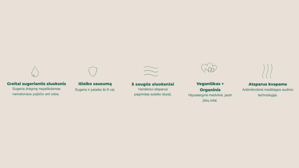 - Pagamintos iš organinės medvilnės, kuri yra itin minkšta ir puikiai sugeria drėgmę.