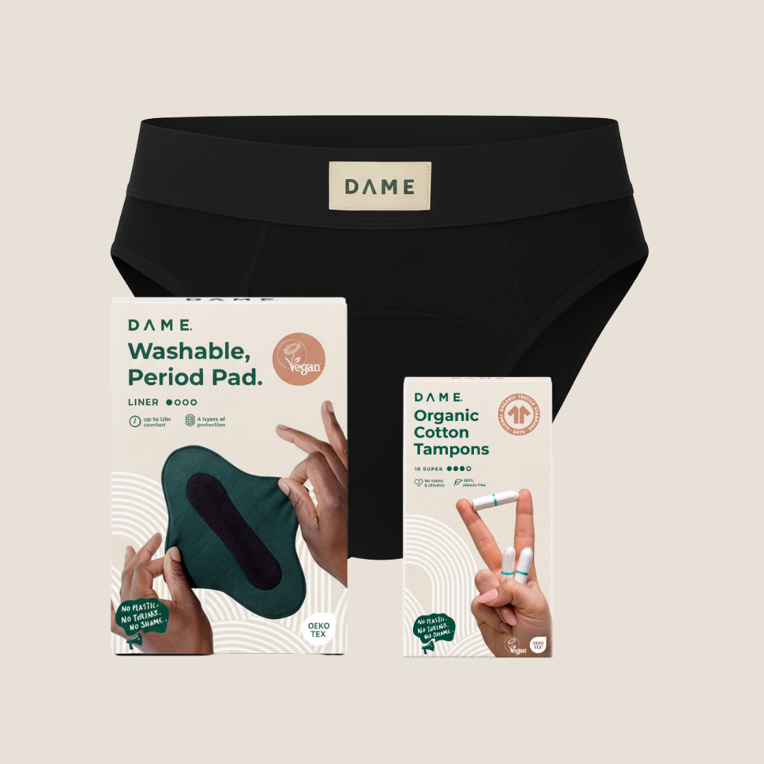 DAME pilna apsauga rinkinys: kelnaitės, įklotas ir tamponai