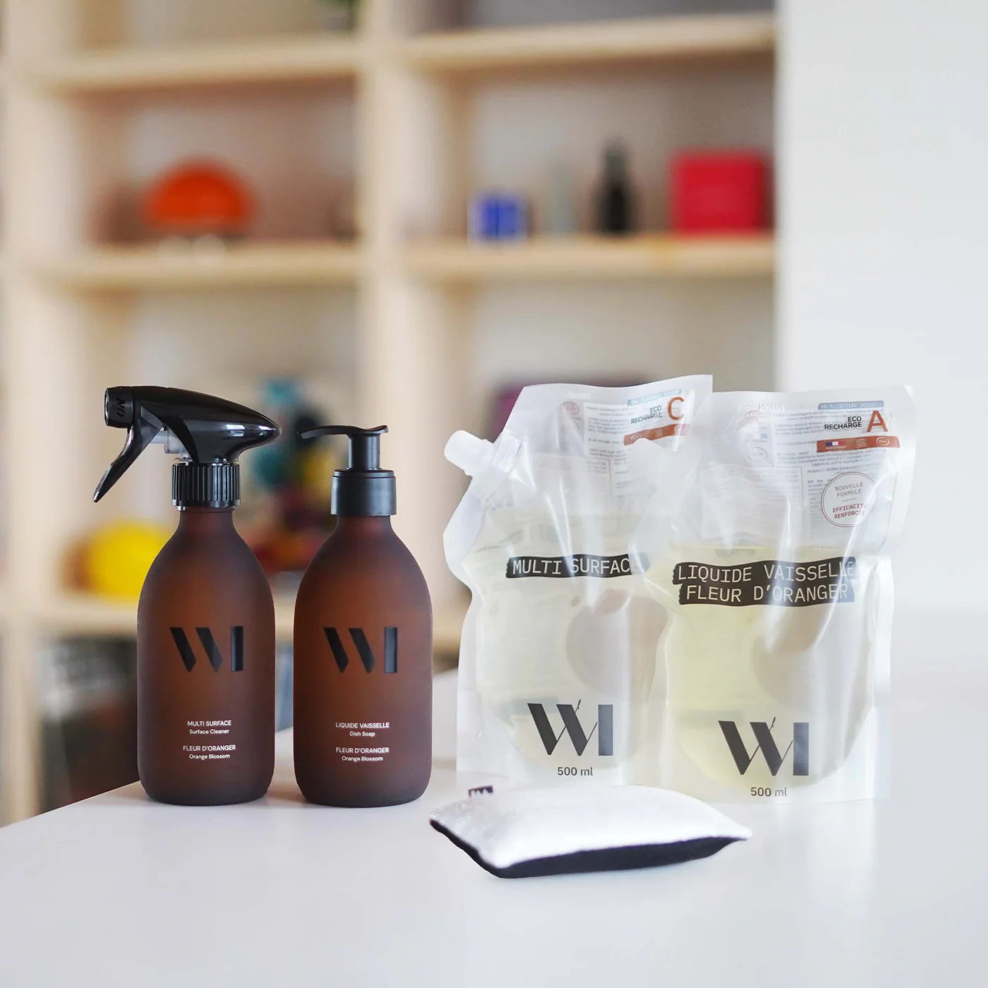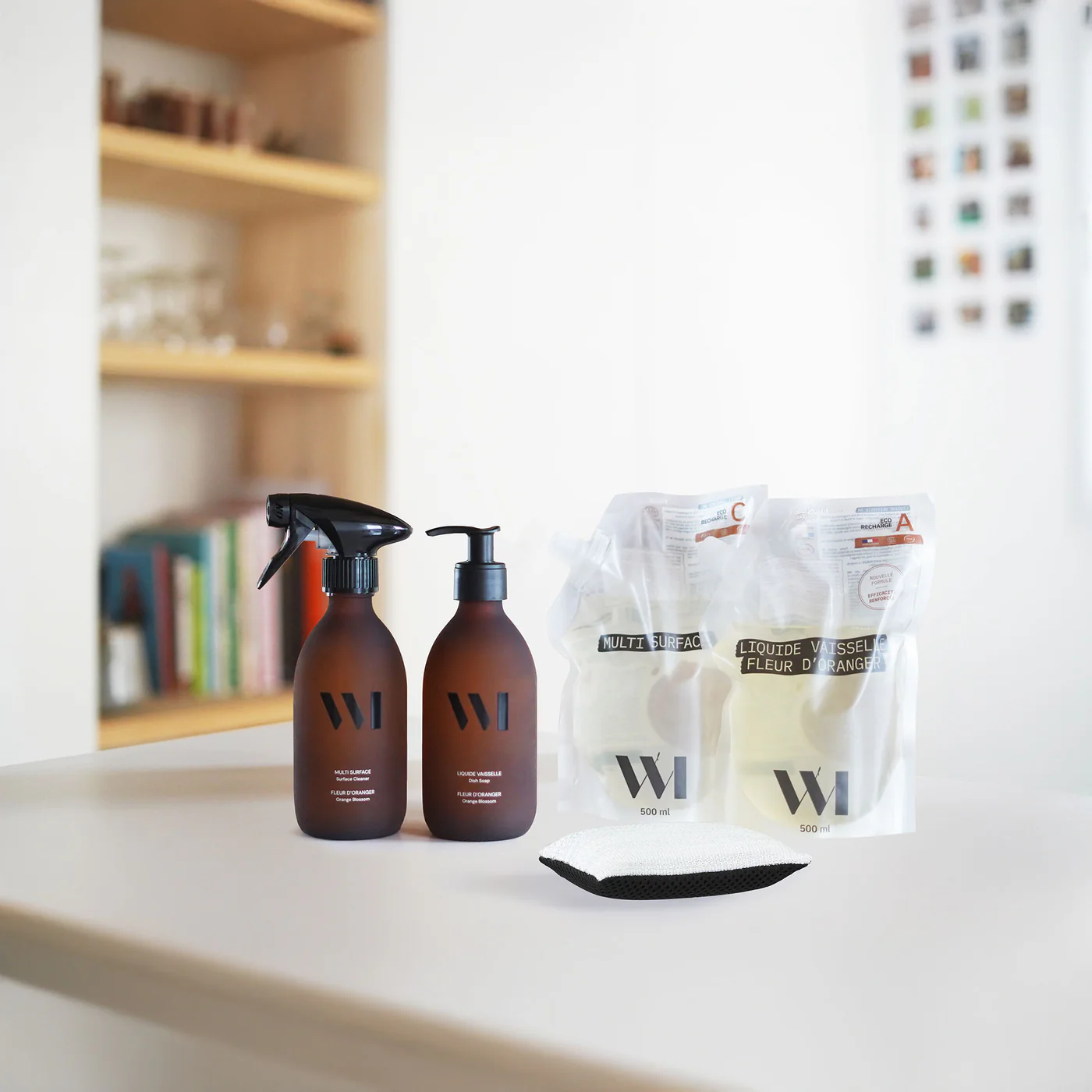 Visi rinkinio produktai buvo sukurti veikti harmoningai: paviršių valikliai ir indų ploviklis papildo vienas kitą, o daugkartinė skalbiama kempinėlė užtikrina, kad švaros procesas išliktų efektyvus be papildomų atliekų.