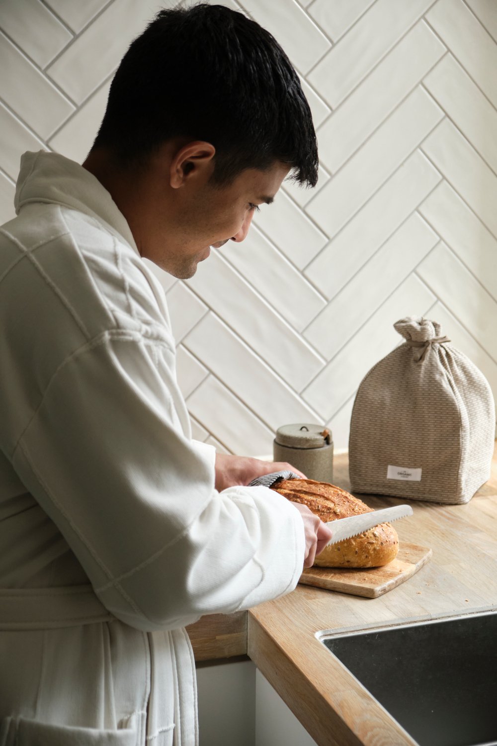 - 100% GOTS sertifikuota ekologiška medvilnė: Jauskitės ramūs žinodami, kad jūsų chalatas pagamintas iš etiškai ir ekologiškai užaugintos medvilnės. Tai pasirinkimas, kuris tausoją planetą ir jūsų odą.