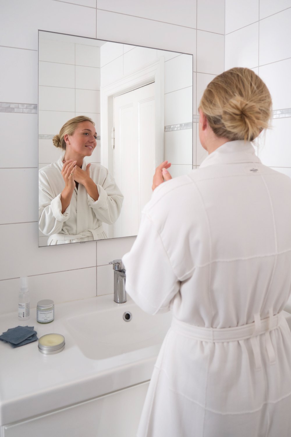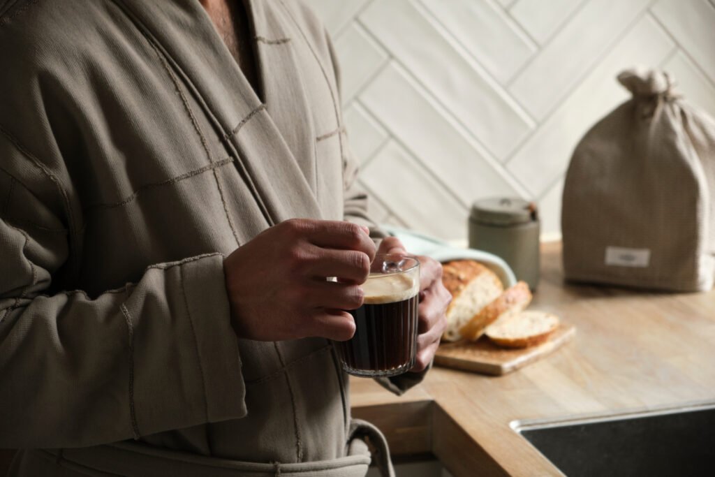 Pasinerkite į tylos ir atsipalaidavimo jausmą, apsigaubę mūsų švelniu ir jaukiu chalatu. Sukurtas tvariam komfortui, jis idealiai tinka naudoti namuose, SPA centre ar keliaujant.